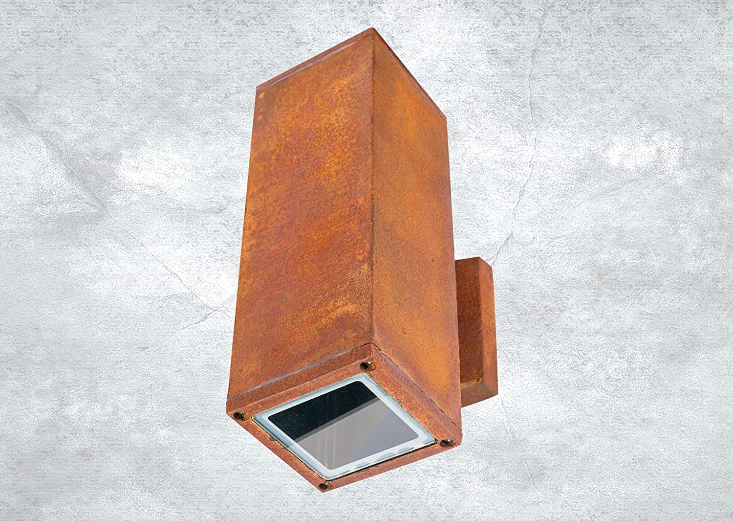 Unsere Aussenlampe aus Aluminium mit echtem Rost und Glaslampenschirm ist die perfekte Wahl für stilvolle und langlebige Beleuchtung in Ihrem Außenbereich. Die Up & Down Leuchte bietet eine wunderschöne Lichtverteilung nach oben und unten, die für tolle Lichtakzente und Atmosphäre sorgt.