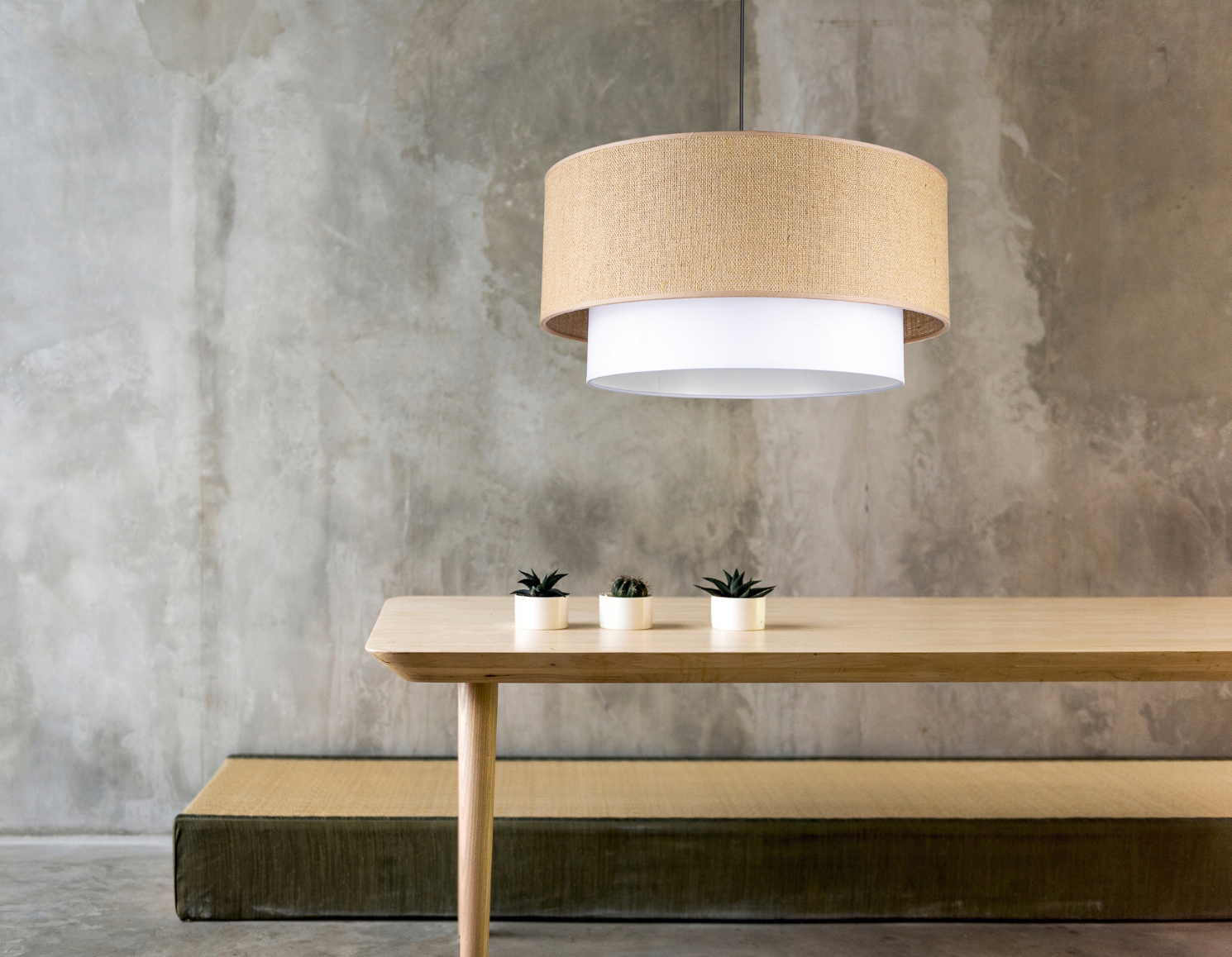 Der Lampenschirm besteht aus hochwertigem gewebtem Jutematerial in einer natürlichen Farbe, die sich perfekt in jeden Raum einfügt. Der Schirm hat eine Größe von 45x23cm und kann in der Höhe verstellt werden.