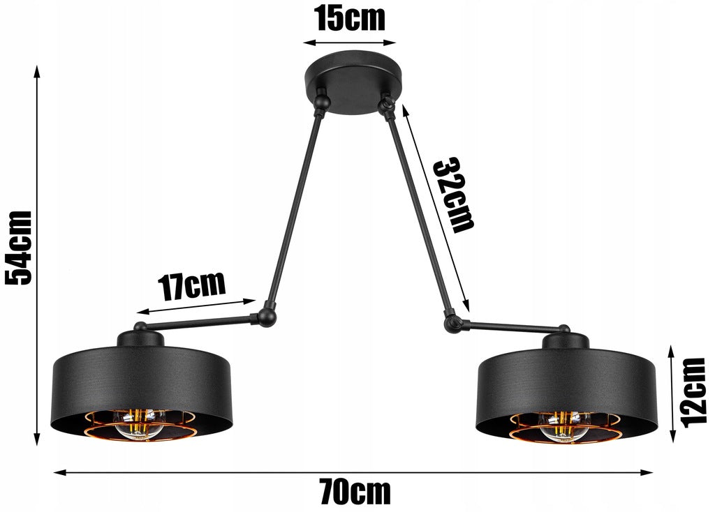 Die Hängelampe LOFT EDISON 2xE27 ist ein zeitloses und stilvolles Beleuchtungselement für Ihr Zuhause. Diese Lampe verfügt über eine pulverbeschichtete Metallkonstruktion in schwarzer Farbe, die robust und langlebig ist. Die Maße betragen mindestens 70cm x 50cm und die Deckenaufhängung misst 15cm.