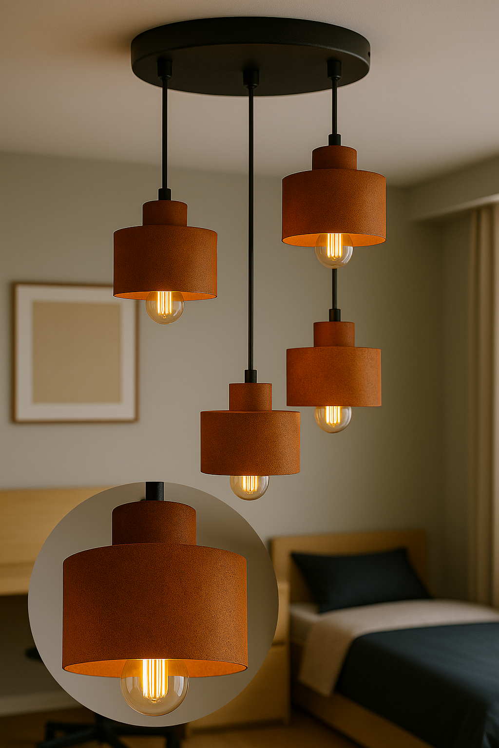 Die Pendelleuchte in authentischer Rostoptik vereint industriellen Charme mit funktionalem Design. Mit ihren fünf Metallschirmen sorgt sie für eine warme und stimmungsvolle Beleuchtung – ideal für Wohnzimmer, Esszimmer, Schlafzimmer, Büro oder Jugendzimmer. Die Lampe verfügt über zwei separat schaltbare Stromkreise, sodass Sie flexibel bestimmen können, wie viele Leuchtmittel eingeschaltet sind.