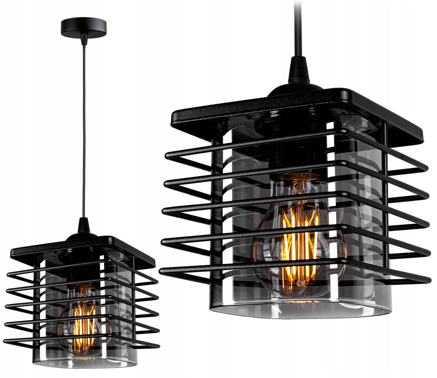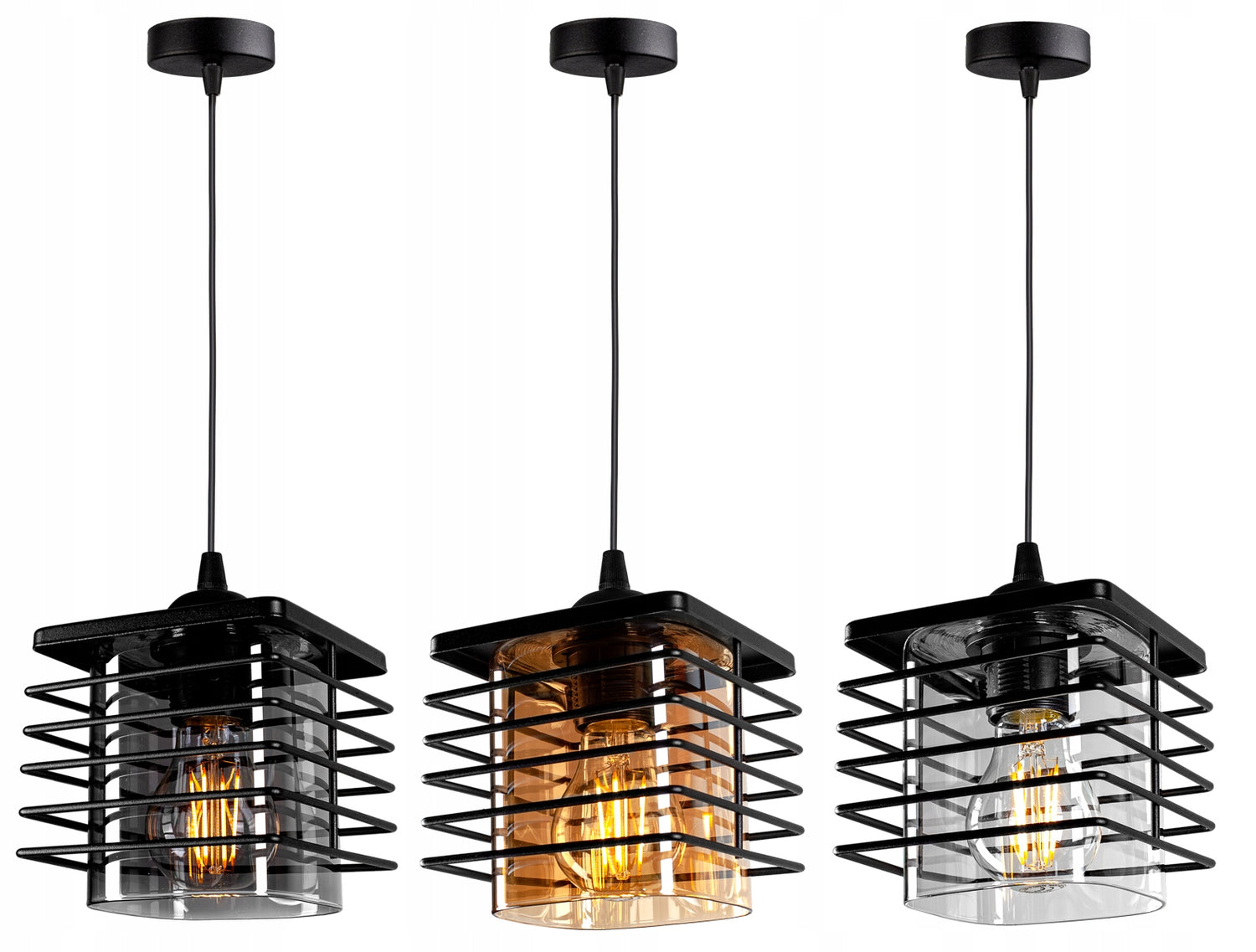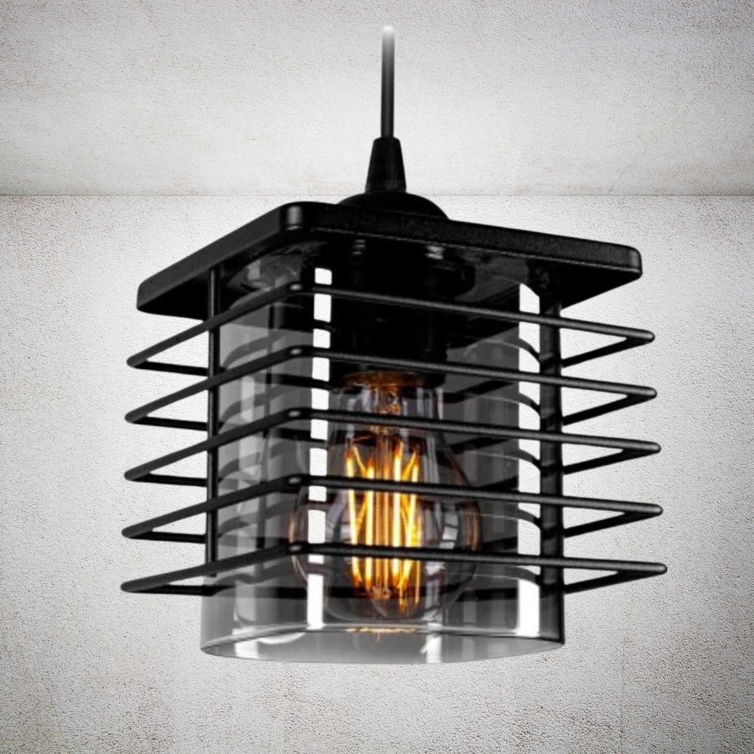 Loft-Hängeleuchte in Schwarzem Metall und Glas - Perfekt für Innenräume, Graphit, Honig, Transparent
