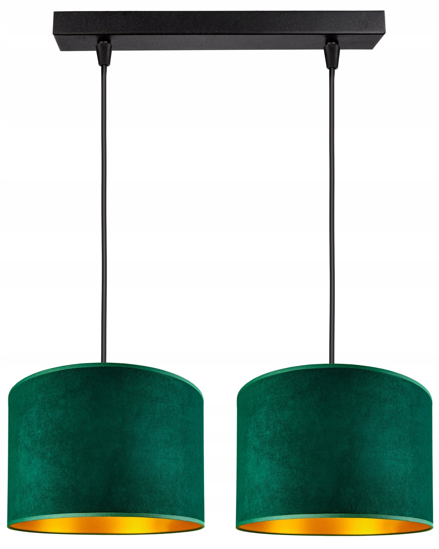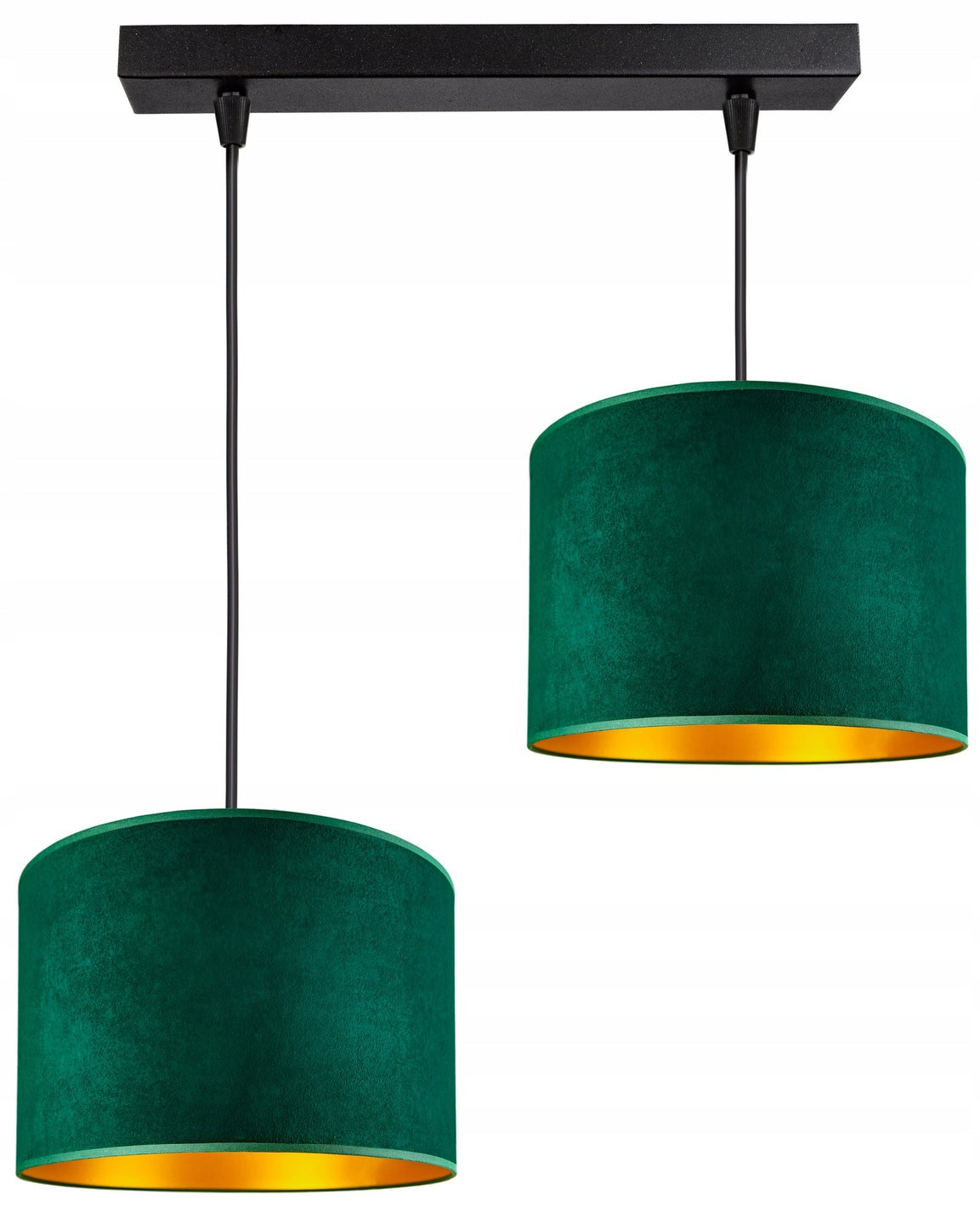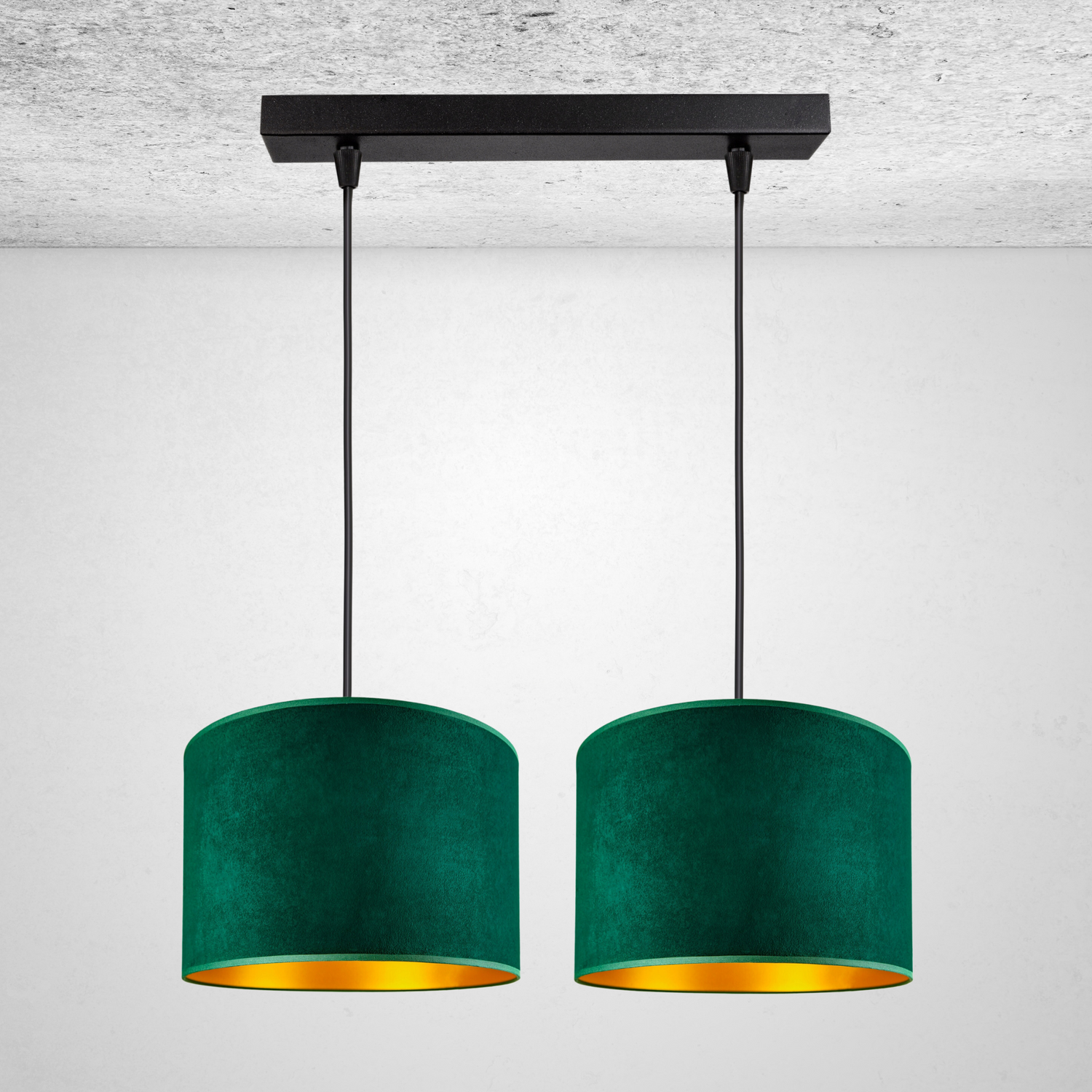 Moderne Hängelampe mit Samtschirm - stilvolle Pendelleuchte in Flaschengrün 2-Flammig
