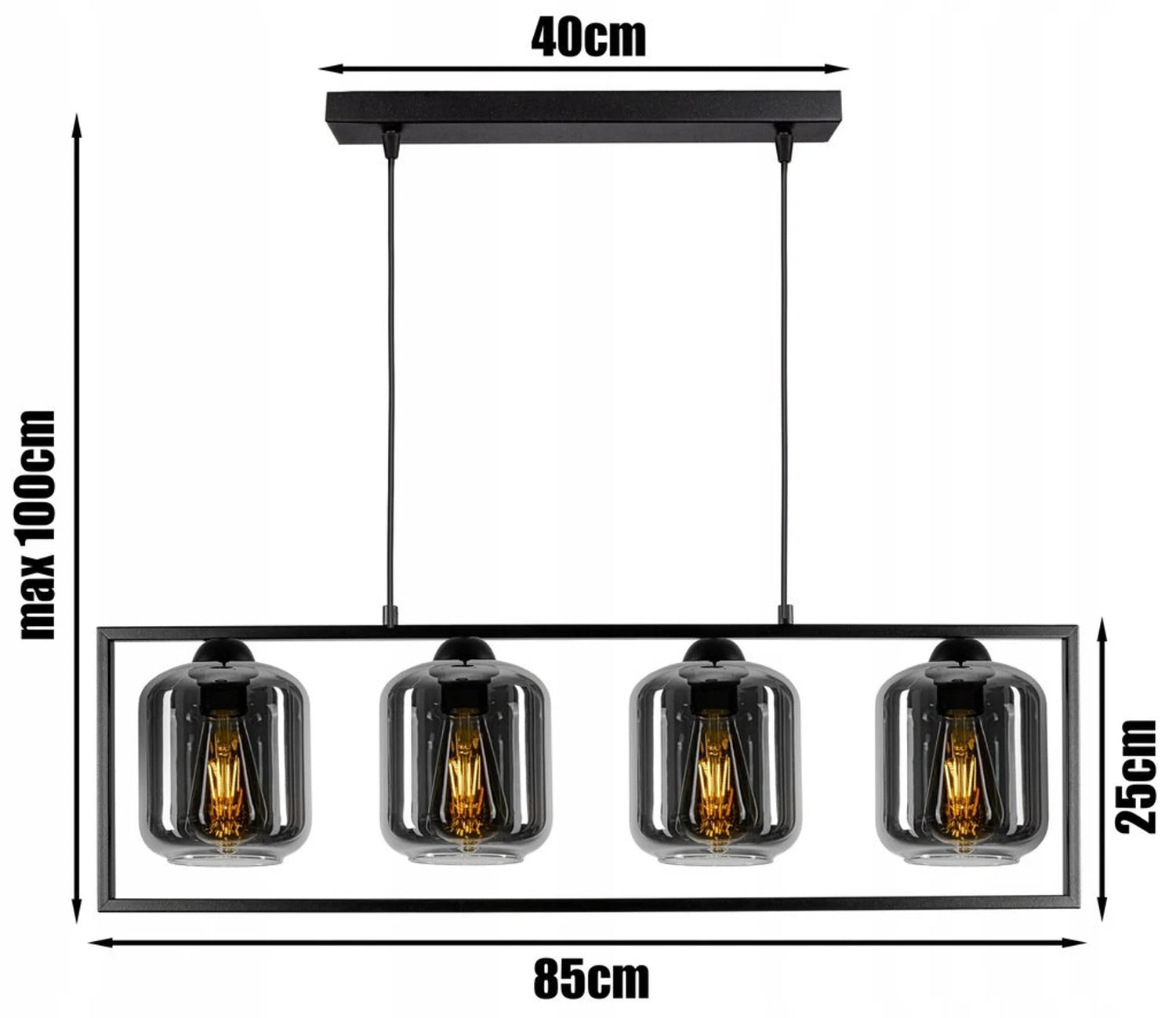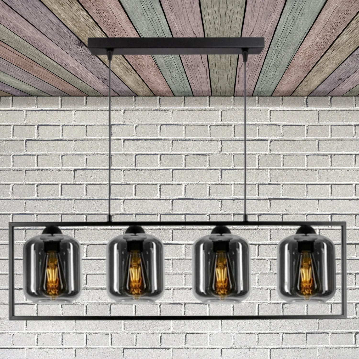 Pendelleuchte 4-Flammig - Graphit, Honig, Transparent nach Wahl