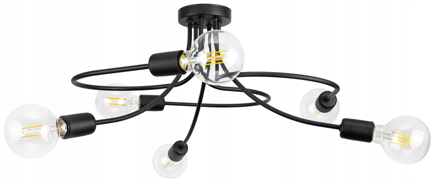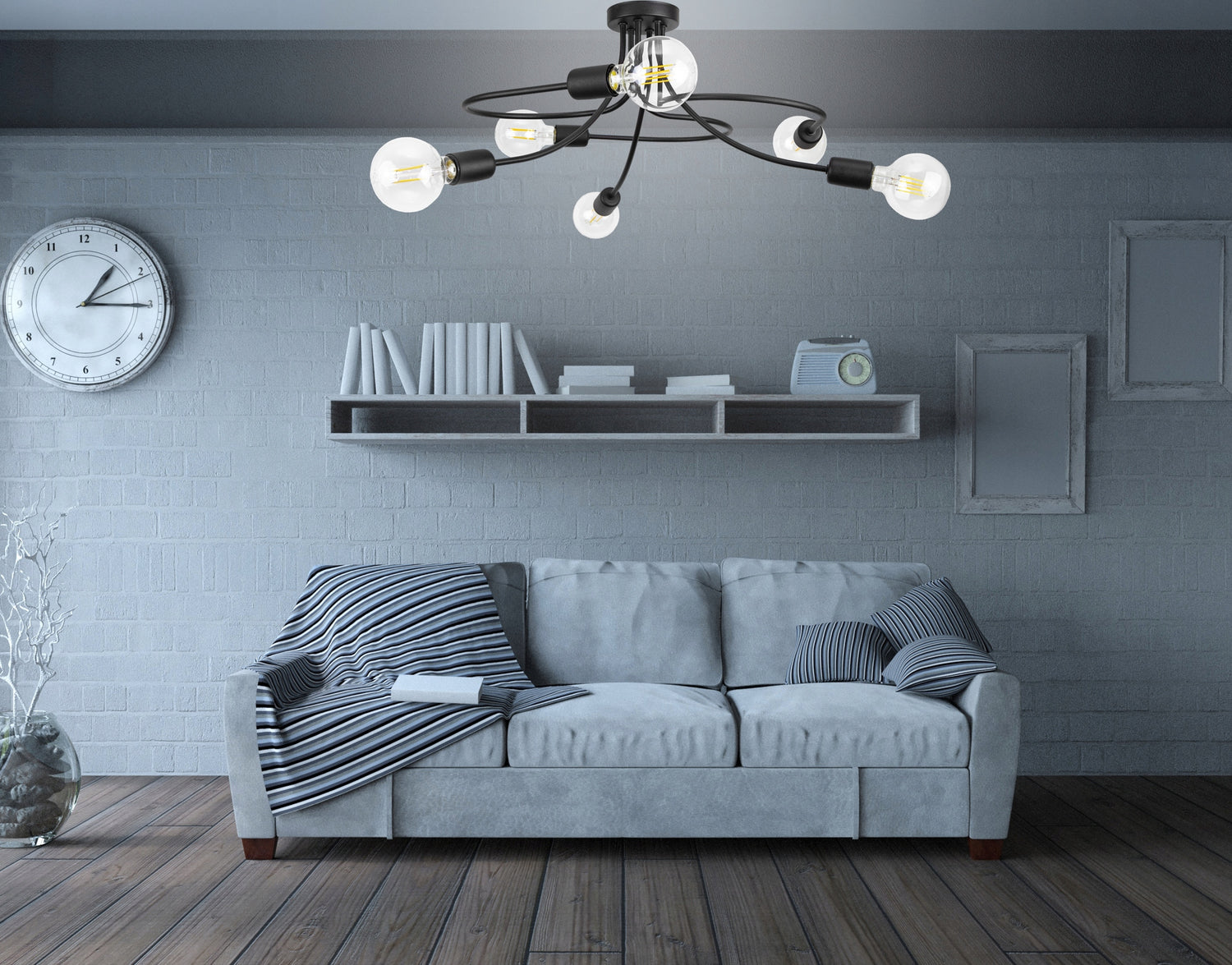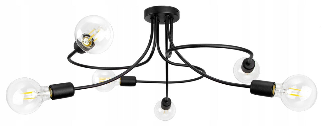 Schwarze Deckenlampe mit 6-Fl E27 Gewinde, 230V, 60W max. Wohnzimmer Loft Stil.
